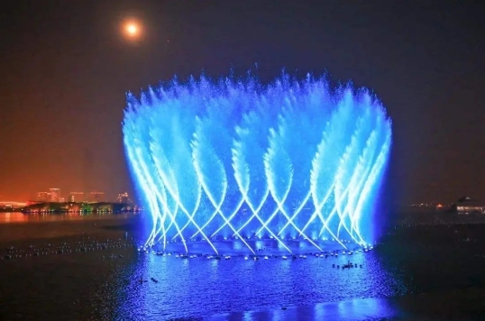 的视觉效果,通过控制灯光的颜色、亮度和变化频率,与水柱的高低、形状和变化相匹配,形成一个炫目多彩的光影效果。音乐