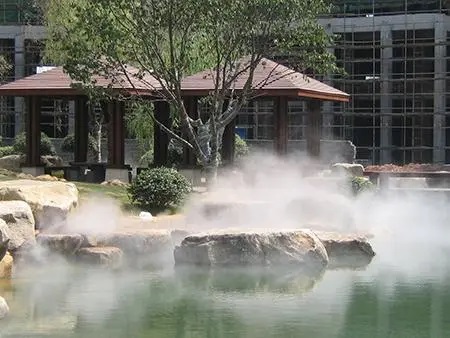 冷雾喷泉可以局部控制环境温度,是周围温度降低。提高空气中水分子含量,将水微粒,形成冷雾。可以造景,降温,冷雾喷泉有着多重功效。 通过节能高压主机组将普通的水经过过滤系统的处理、加压至4.5Mpa以上,再由高压管道将高压水通过宝石撞针喷嘴撞击改变了射流截面速度分布,使大颗粒的水滴破碎雾化成为...